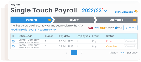 The new and improved Single Touch Payroll portal makes for easier understanding of STP packets that need to be submitted. It's more intuitive with better tracking and troubleshooting. No longer will there be automatic STP submissions, every STP submission will be created ready for you to review and submit.