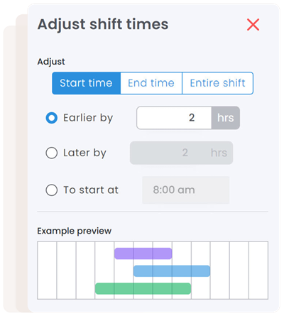 Bulk adjusting shifts in Approve Shifts now works the same as the roster, with the ability to adjust start and end times easily in a new sleek editing window.
