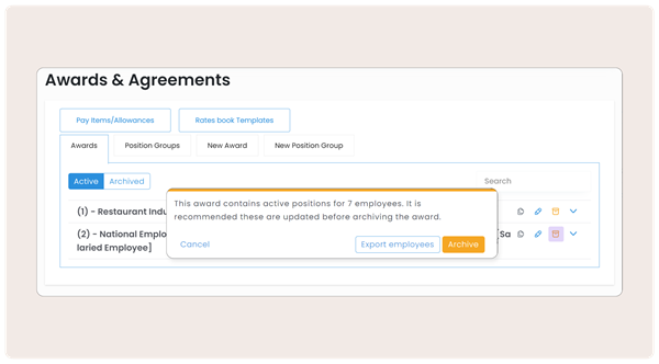You can now keep your unused awards organised! To do this, simply click the 'Archive' button next to the award you want to archive. If you would like to export the associated employees first and make any actions first, you can do that too.