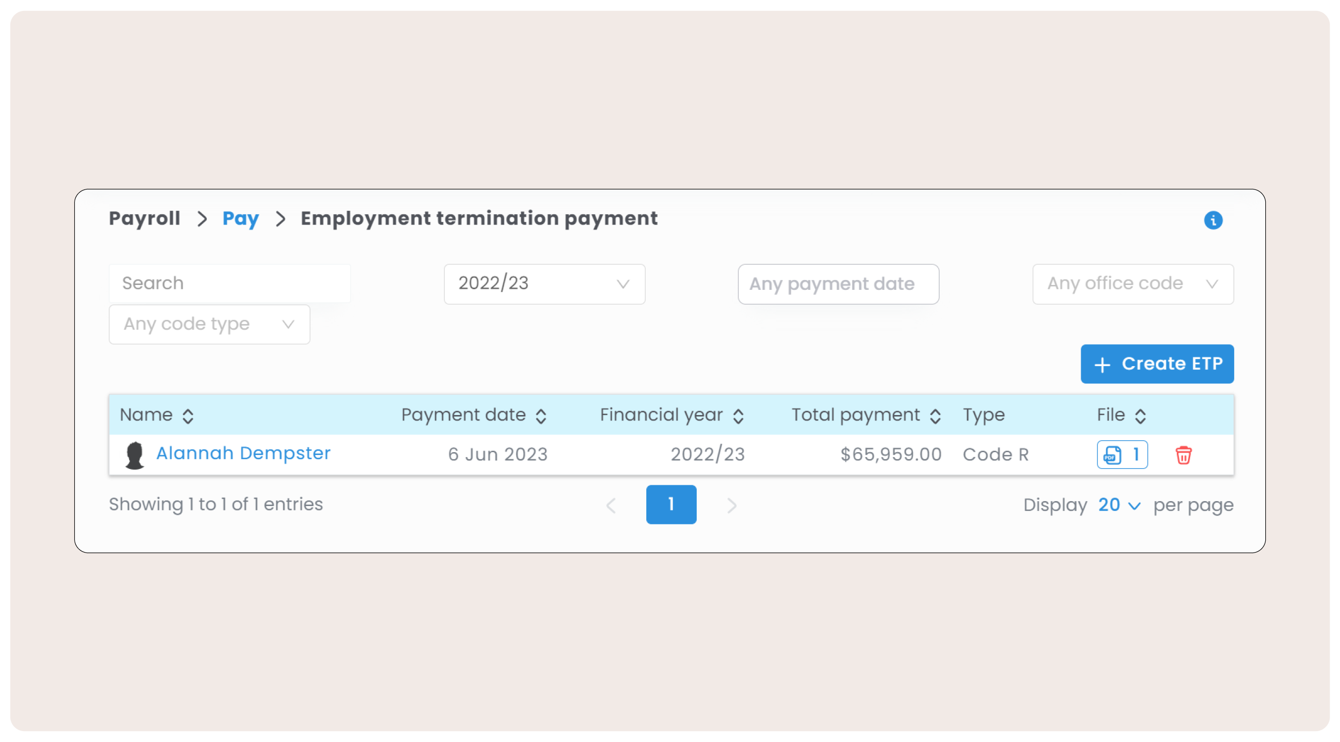 That’s right. We’ve redesigned the ETP page. Creating Employment Termination Payments is now simpler and faster.