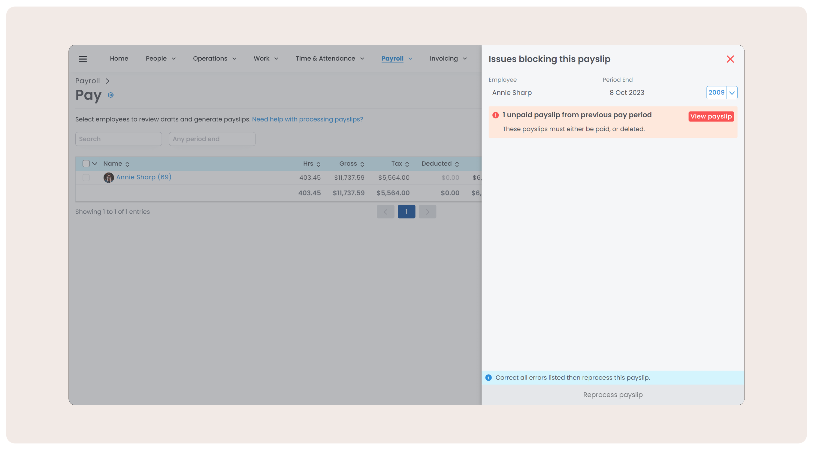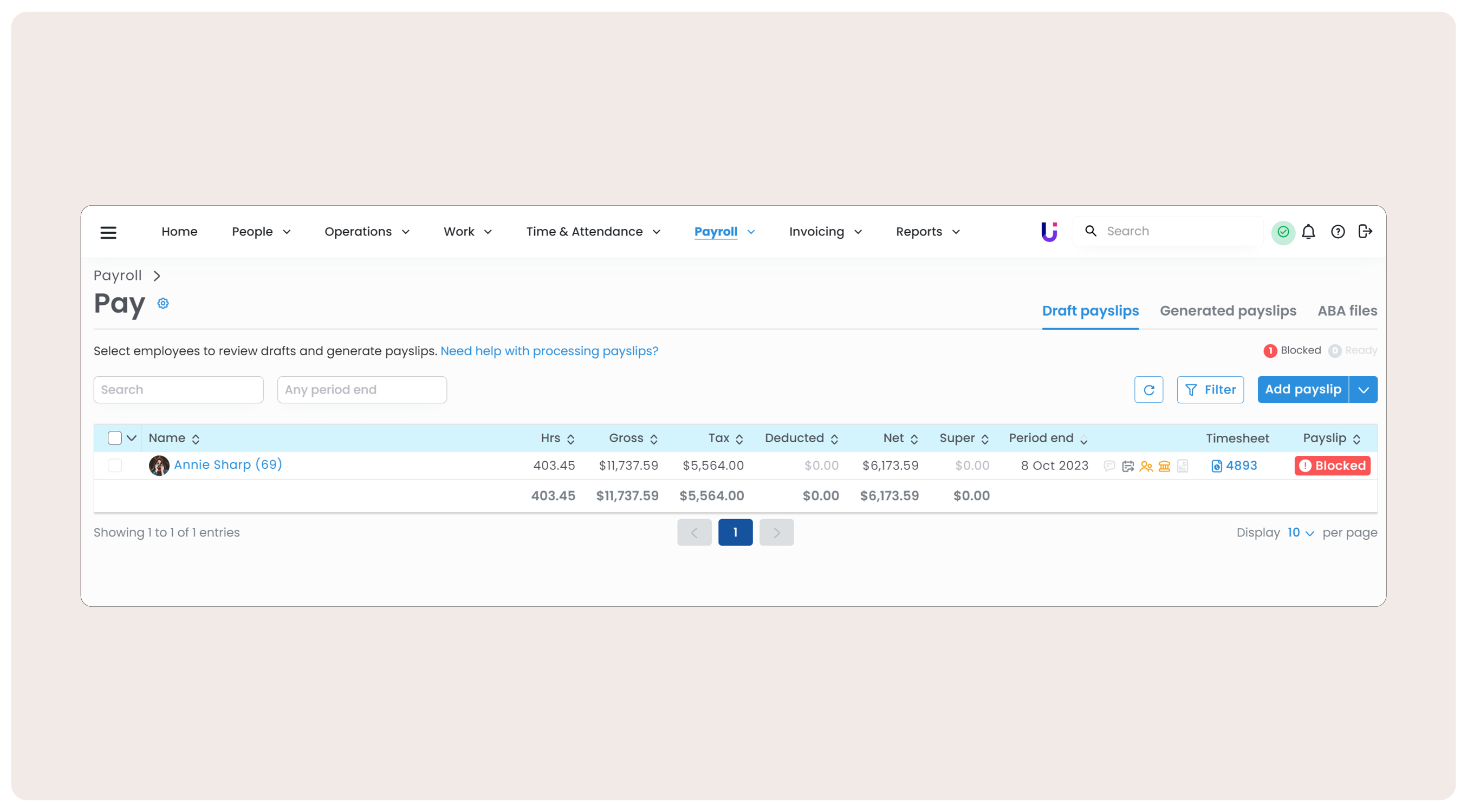 - Blocked Payslips – a new ‘Blocked’ status will direct your attention to any unprocessed payslips.