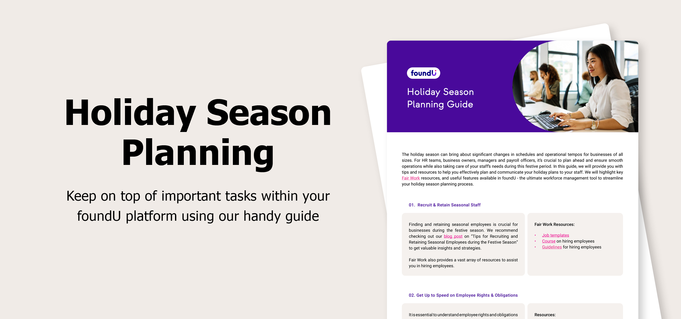 Getting your staff ready for the holiday period is more than just approving leave and organising rosters. We’ve created this guide filled with actionable tips, insights and resources to help effectively plan and communicate during the festive season.