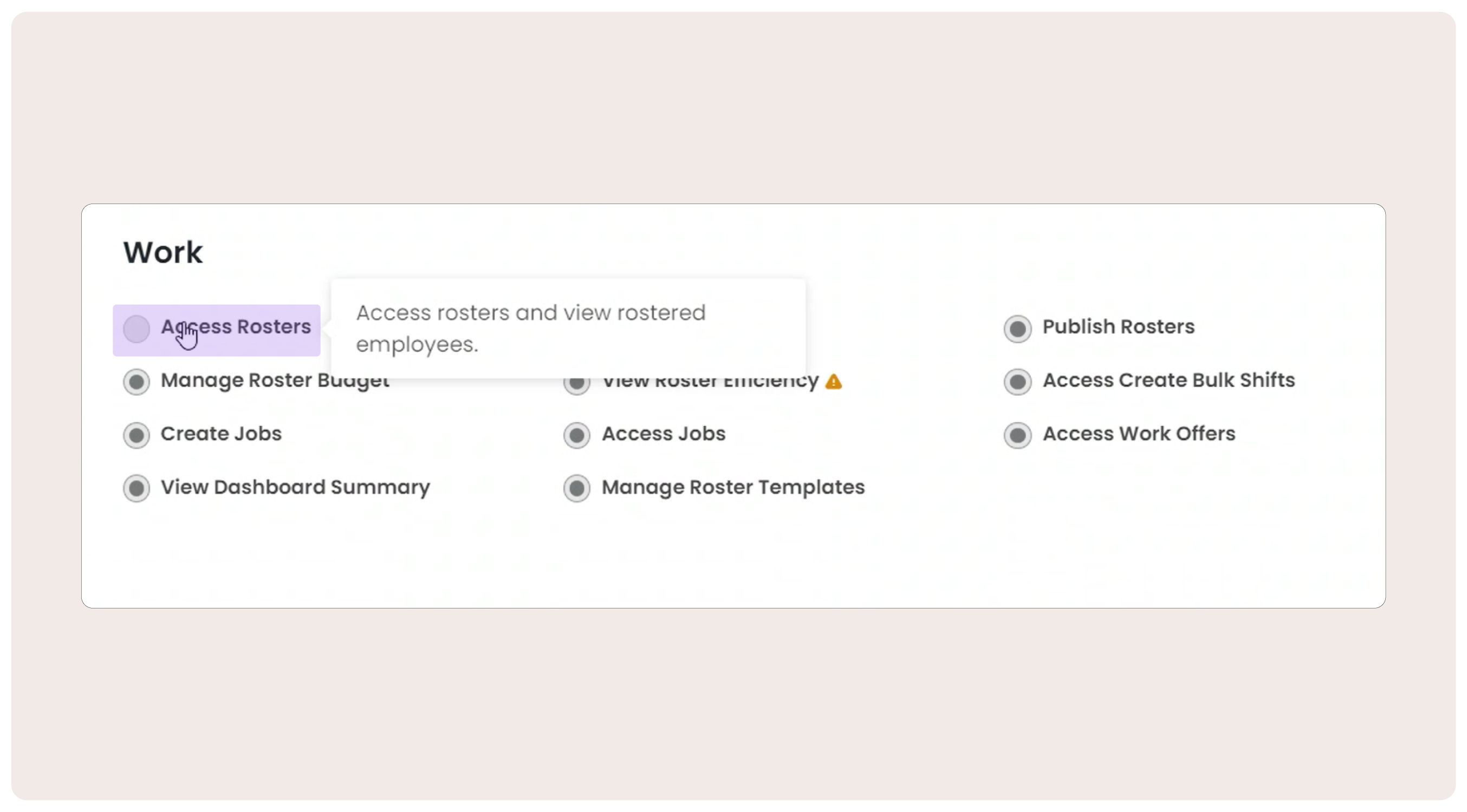 For users that require access to configure new rosters, edit roster locations and details, or archive a roster. Please ensure they have the 'Manage Rosters' permission enabled.